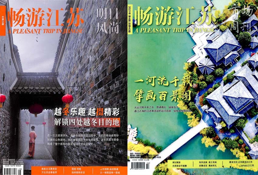 雜志簡介:《暢游江蘇》是由南京出版傳媒集團出版的一本旅游雜志,創辦于2006年,雙月刊,單期152頁?!睹魅诊L尚·暢游江蘇》雜志專注于江蘇這片富饒的土地,采集山水美景和人文故事,將攝影家與旅行者的暢游經歷與你分享,為你帶來全新的閱讀體驗。