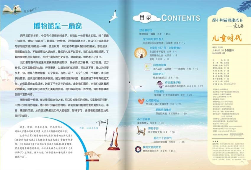 《兒童時代》雜志是一份富有想象力和成長指數的月刊,融文學性、知識性、趣味性及互動活動于一體,呈現了極具魅力的靈感閱讀,也呈現了兒童時代的天真與無邪,為小讀者提供童年閱讀的解決方案,打開成長的心靈空間。