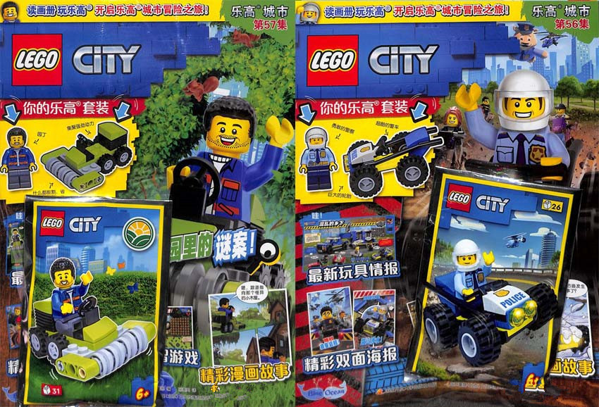 《樂高城市》主要欄目:雜志、特刊、漫畫故事、漫畫故事特刊、貼紙、福袋等。