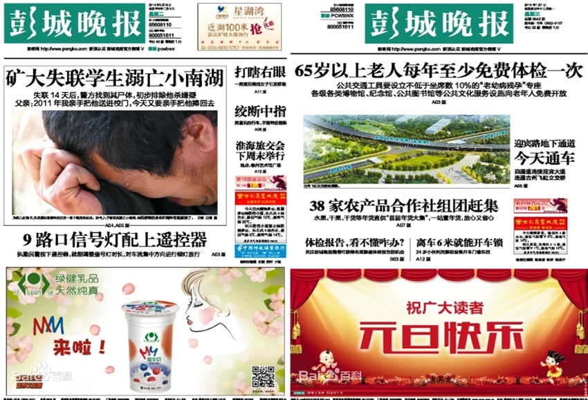《彭城晚報》是一本廣受好評的社會熱點類雜志,創刊于1994年,全年期數365期。紙張開本4開,國內刊號32-0107。歡迎訂閱。