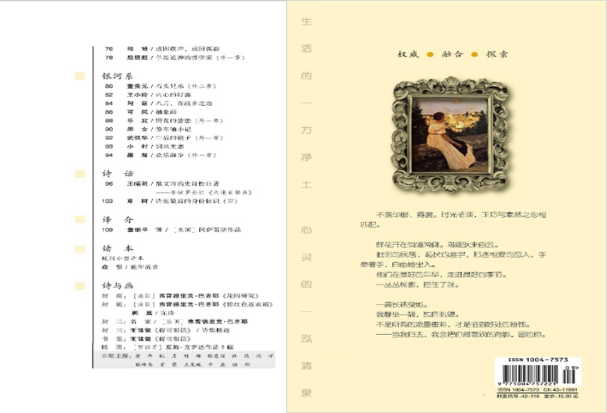 雜志以“精品化、大眾化、禮品化”為方向,踐行“三精”標準(作品精短、形式精美、印制精良),形成獨特的藝術風格。上半月版聚焦當代散文詩創作與理論研究,開設“第一文本”“詩性大地”“譯介”等欄目,展現母語之美與詩學深度;下半月版(人文綜合版)倡導詩意生活,設置“詩無邪”“室內樂”“藝術志”等板塊,融合詩歌、散文、隨筆、影像等多媒介表達,傳遞思想與美。全刊每篇作品均配備音視頻二維碼,實現“掃碼即聽、視聽交融”的融媒體體驗。