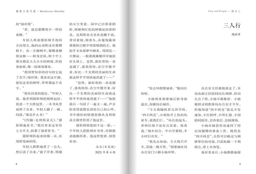 雜志內容涵蓋社會百態與人生萬象,設有“新人佳作”“經典重溫”“海外珍品”“創作手記”等多個特色專欄。每期精選百余篇千字左右的精品佳作,既有文壇名家的精心之作,也注重發掘文學新銳的原創作品,充分展現微型小說“微言大義”的獨特魅力。