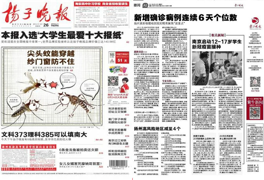 “揚子晚報”四個字為時任中共中央總書記同志親筆題寫。《揚子晚報》由具有光榮革命歷史的中共江蘇省委機關(guān)報新華日報主辦。