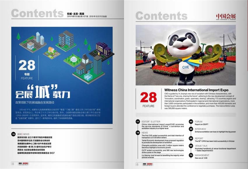 雜志報道包括行業政策、會展新聞、會展經濟總量、市場預測、行業動態等最新、最全面、最即時的信息。提供特色視覺欄目,包括行業精選、現場直播等,內容表現手法豐富、形式新穎,展現場、展館設施、展會最新動態等都在第一時間為您呈現。